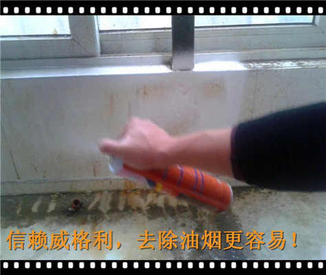 8、廚房的玻璃上和墻壁上也沾滿了油漬,有時(shí)候還有一些小飛蟲的尸體等亂七八糟的東西,我們用洗多多罐裝泡沫油煙機(jī)清洗劑,輕輕一噴,雪花狀的泡沫就會(huì)灑滿到臟玻璃和墻壁上,很快的和油漬起反應(yīng)。