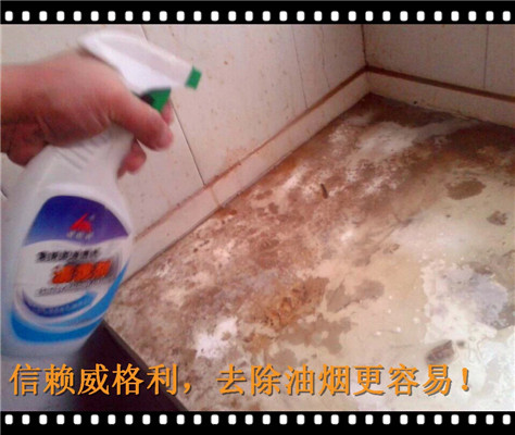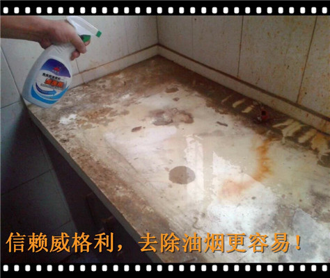 4、油污很快被分解,噴灑的地方都會(huì)形成黃黃的油漬,原來沉積在灶臺(tái)上的陳年油垢都很快的分解成液體狀的黃色油漬液體。