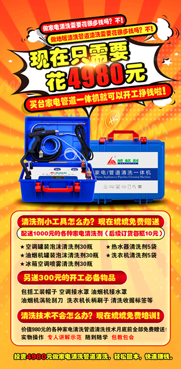 投資4980元做家電清洗管道清洗,輕松回本,快速賺錢。